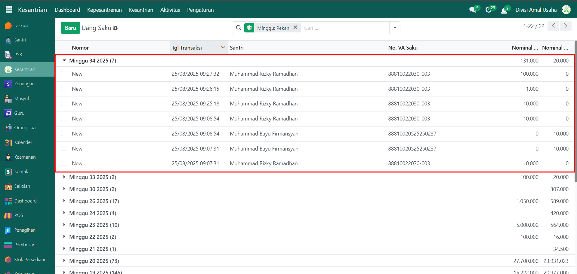 Mengelola Mutasi Saldo Santri
