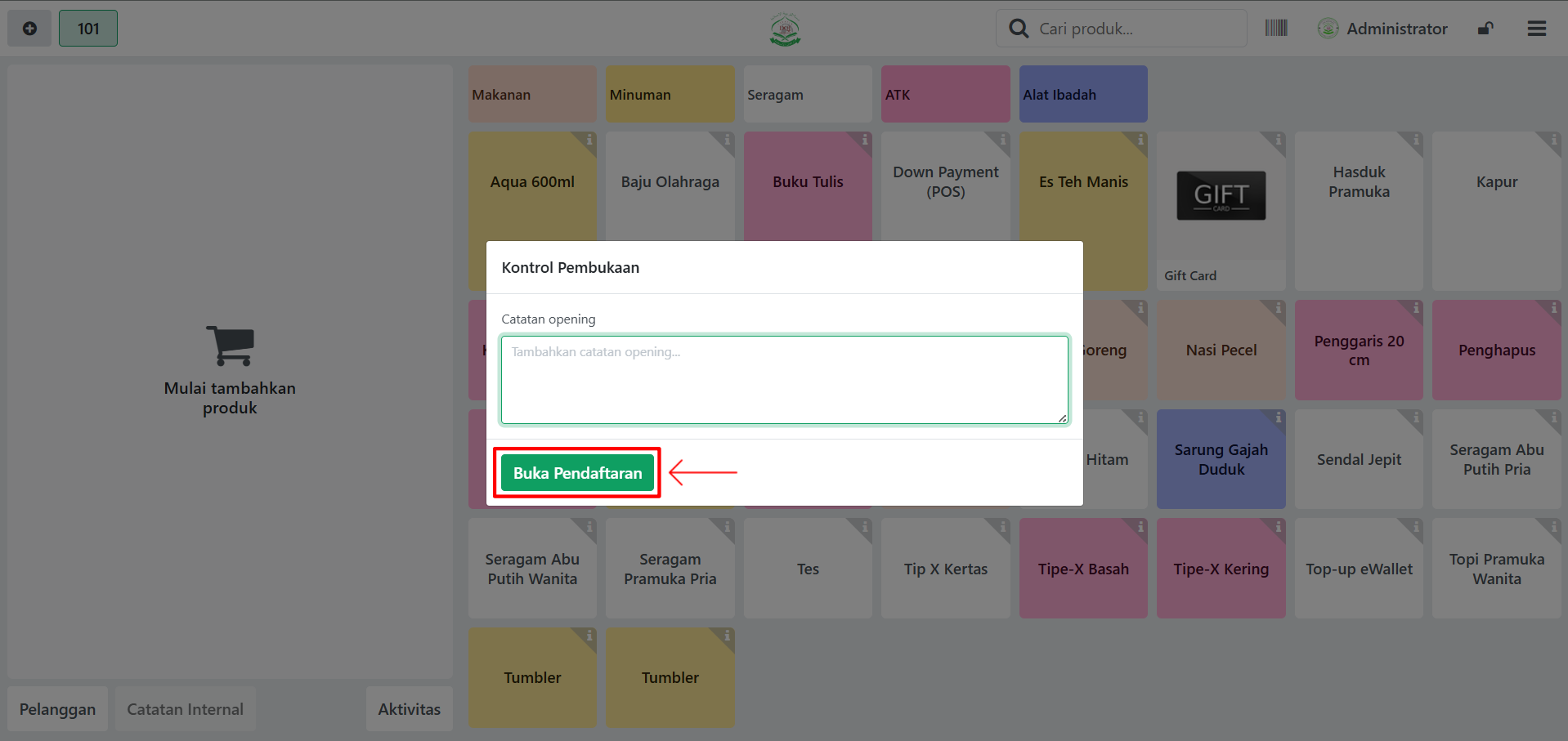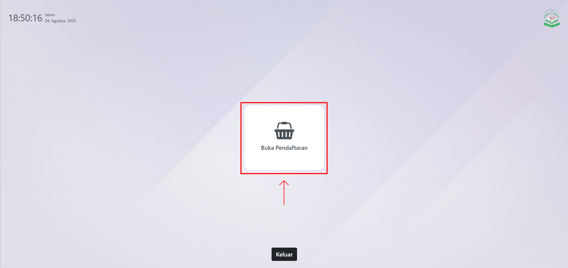 Akan muncul halaman baru, klik tombol "Buka Pendaftaran" untuk masuk ke sesi POS.