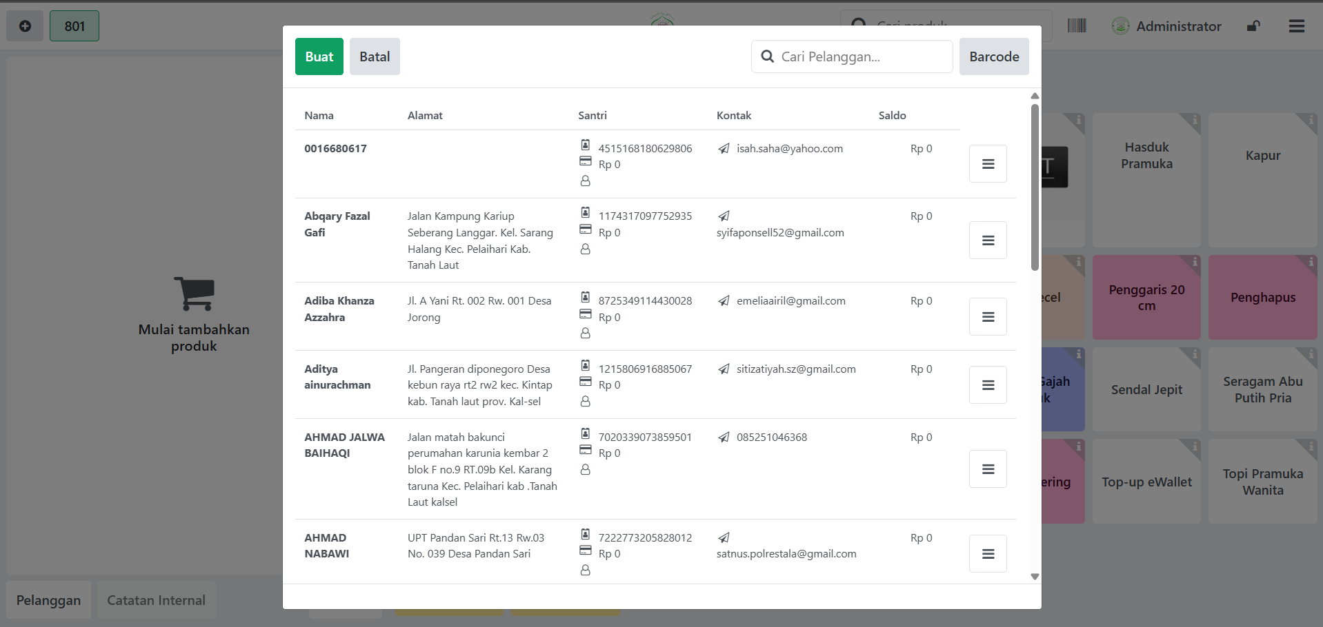 Akan tampil daftar pelanggan (santri/orang tua). Anda dapat memilih pelanggan dengan dua cara: