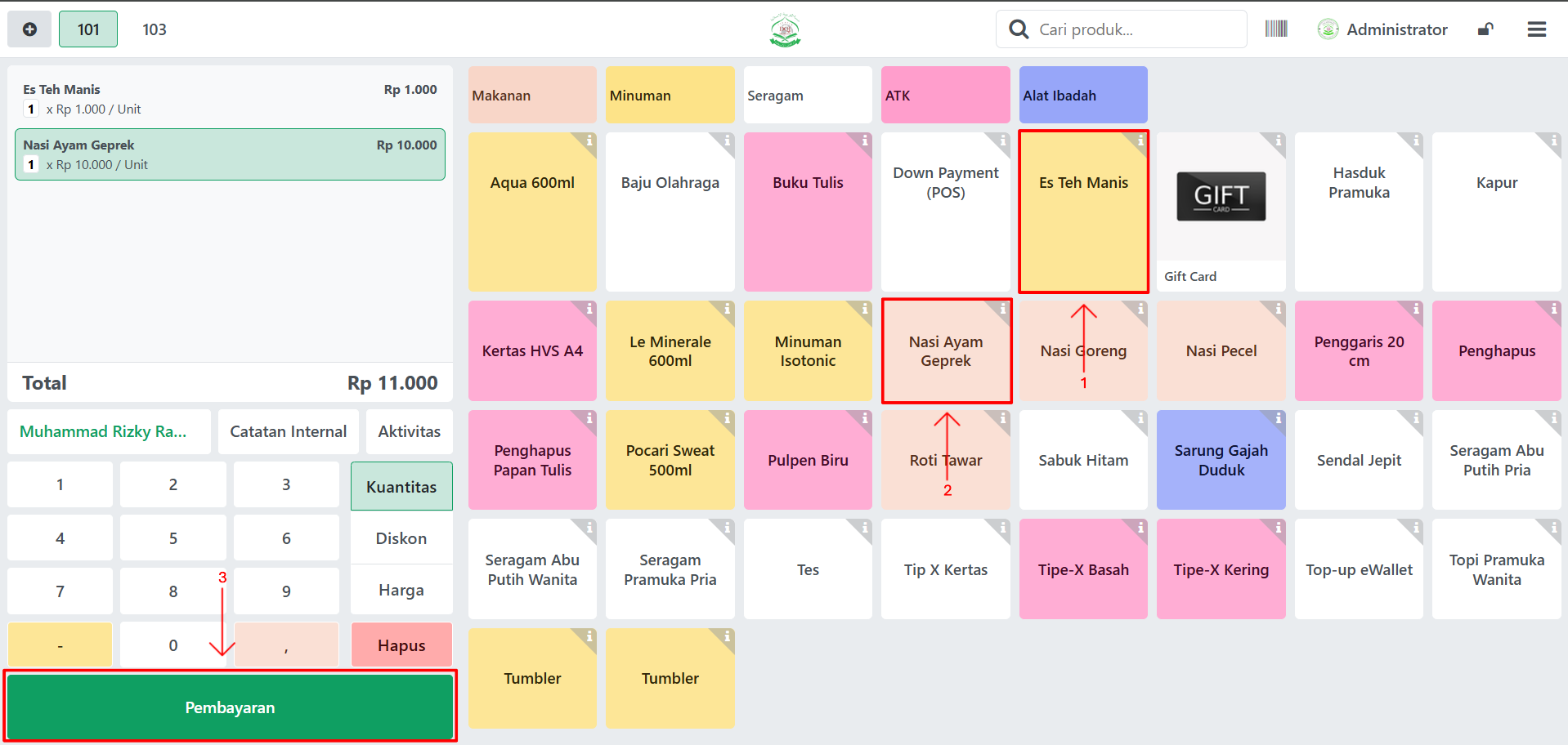 Berikut adalah langkah-langkah untuk melakukan simulasi penjualan via kasir pada Odoo Pesantren.