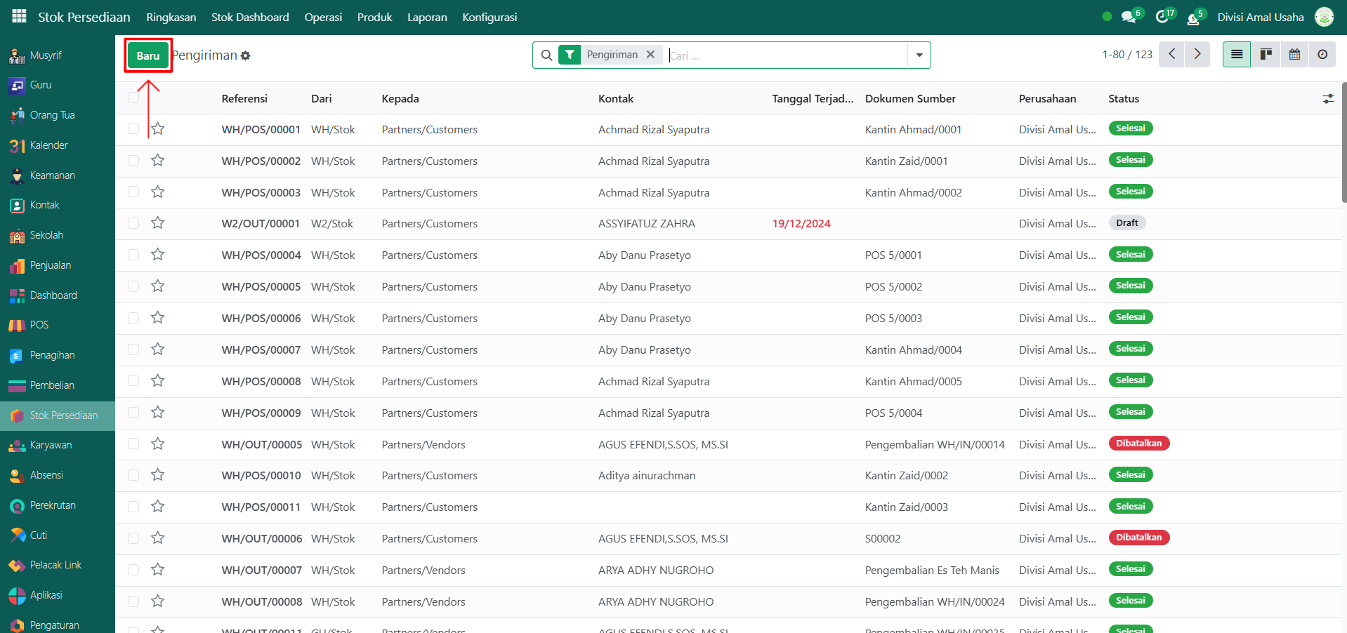 Klik tombol "Baru" untuk membuat dokumen pengiriman barang baru.