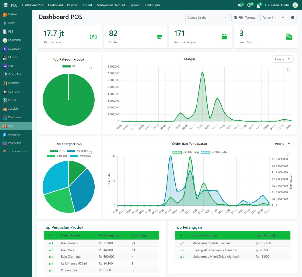 | Top Pelanggan | Menampilkan daftar pelanggan teratas yang melakukan pembelian di sesi Point of Sale. |