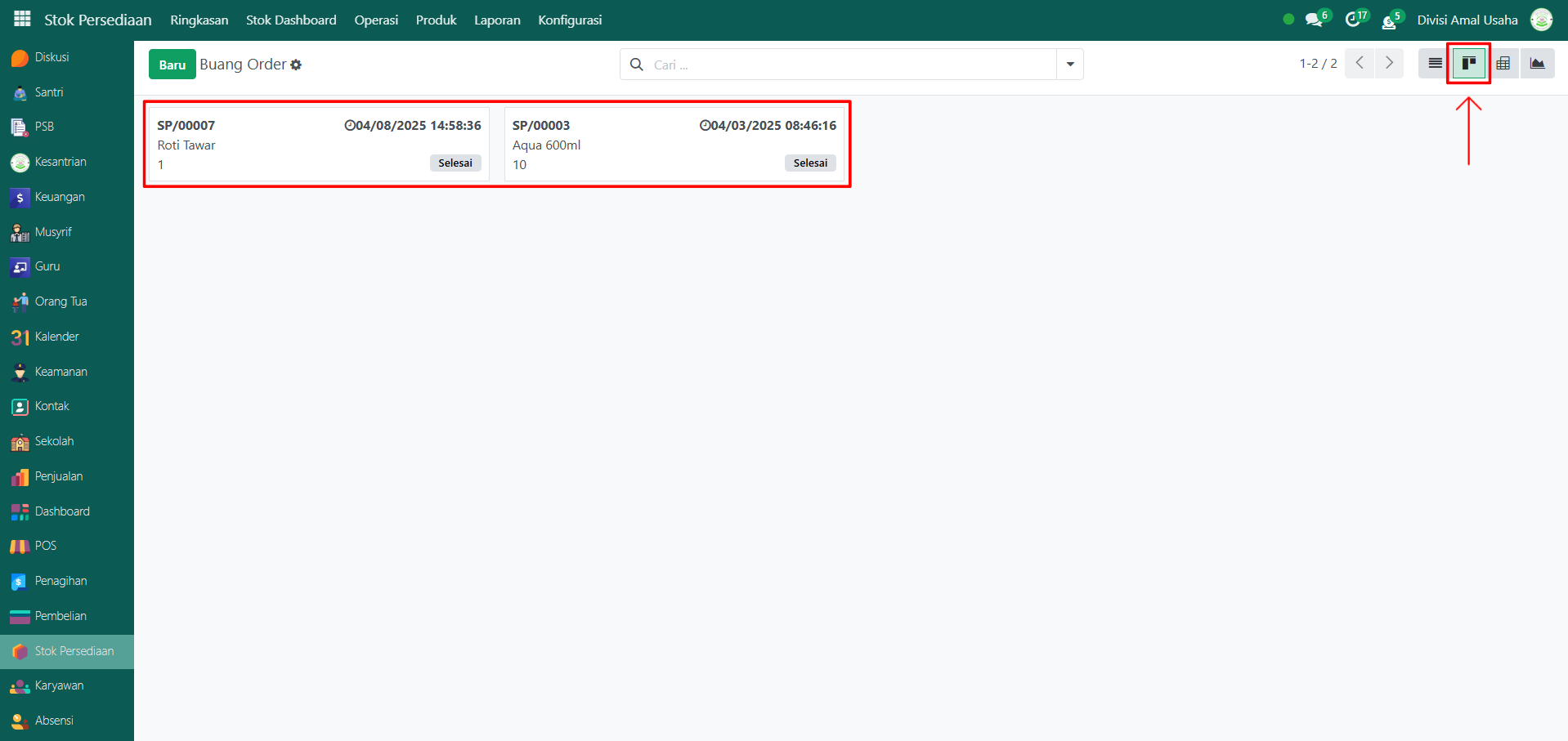 Ubah tampilan daftar menjadi Kanban apabila diperlukan dengan mengklik icon Kanban di samping icon tampilan List.