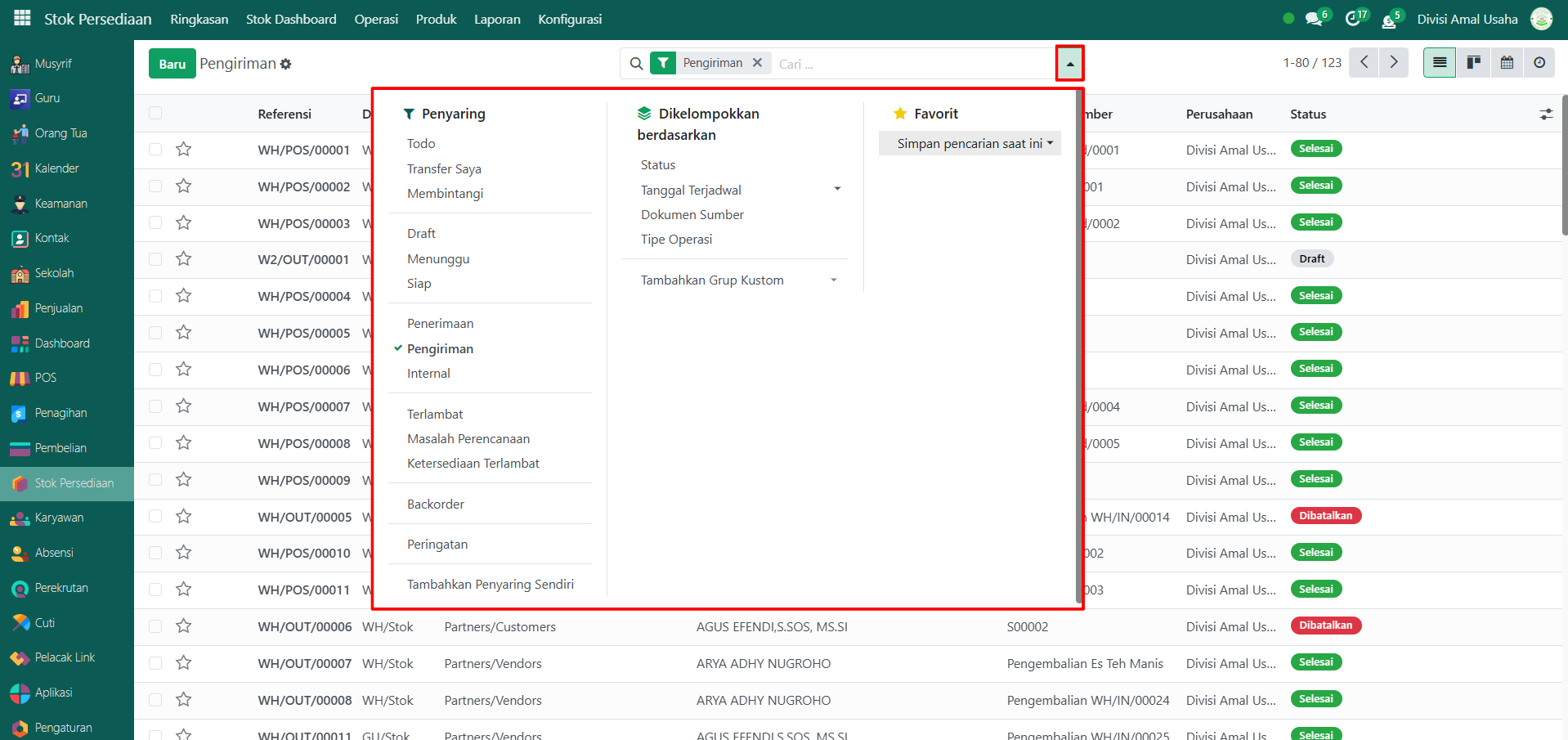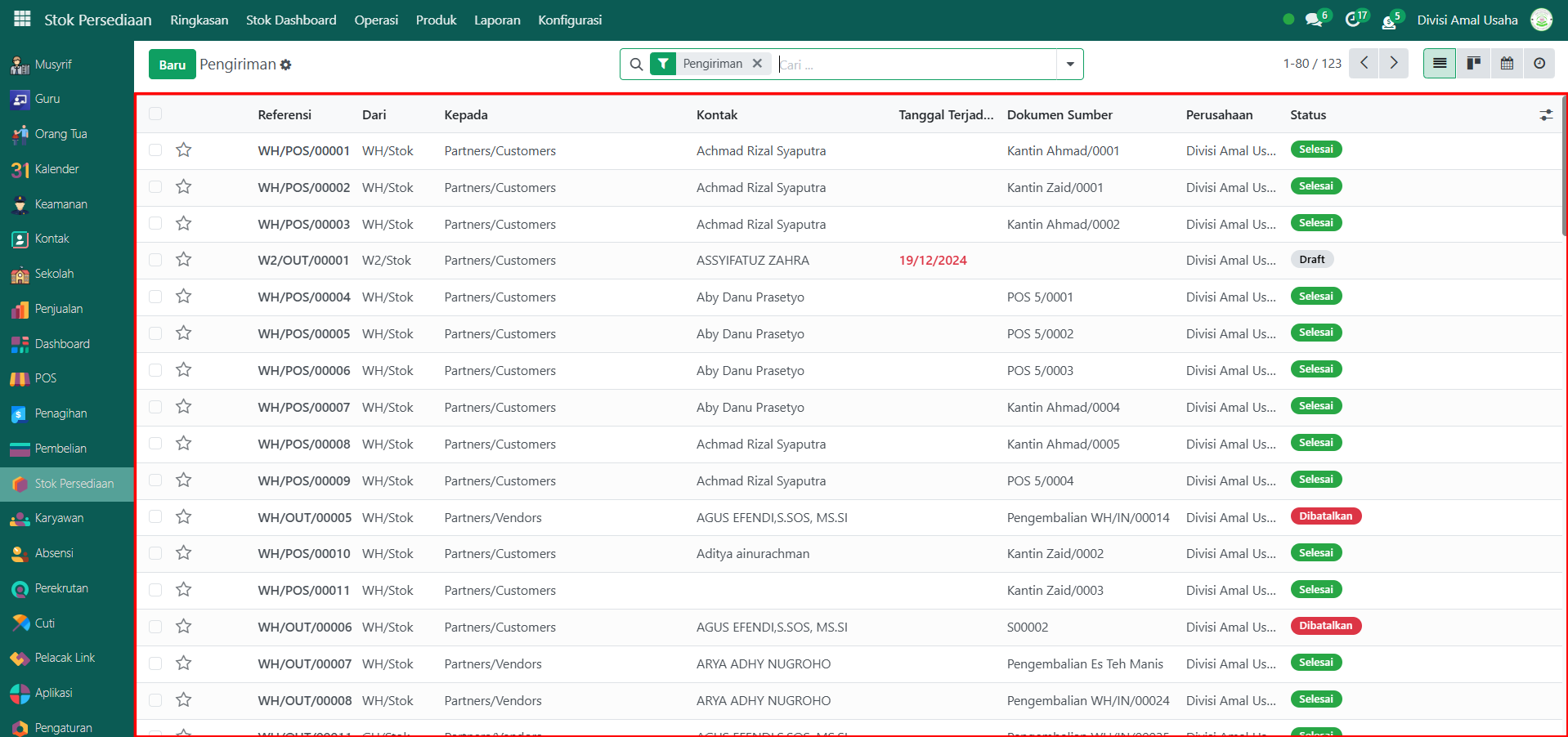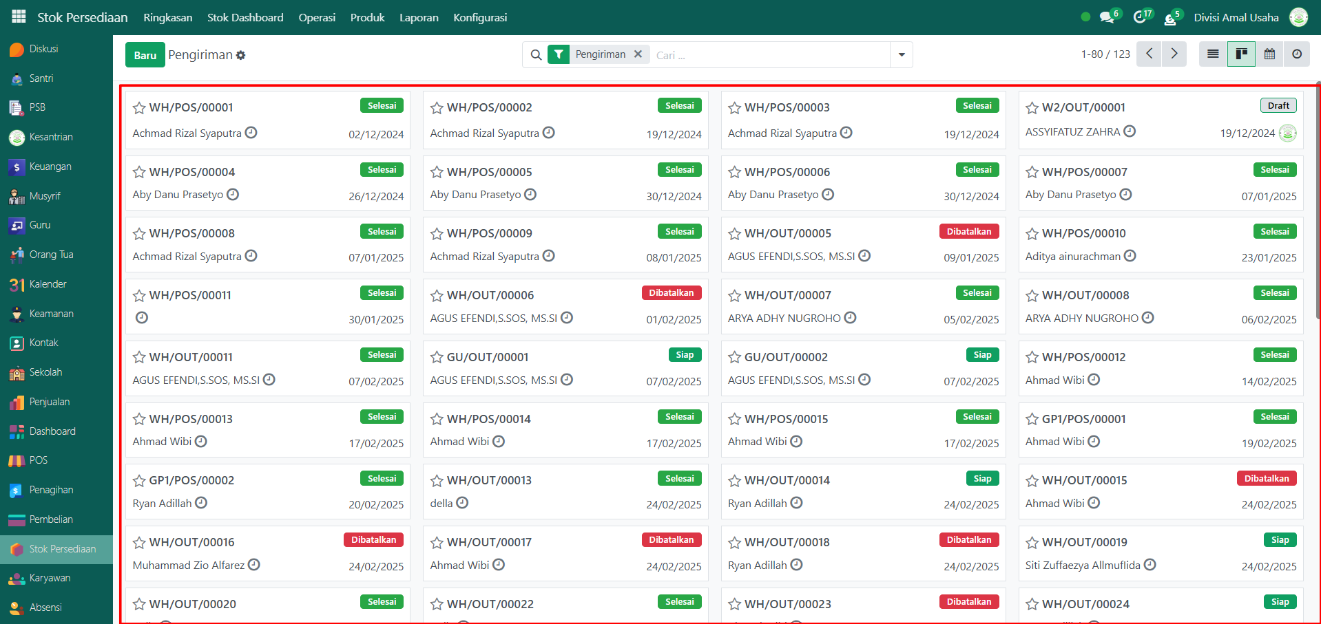 Berikut adalah langkah-langkah untuk melihat data riwayat pengiriman barang pada Odoo Pesantren.