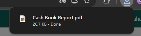 Sistem akan menghasilkan laporan Buku Kas dalam format PDF.