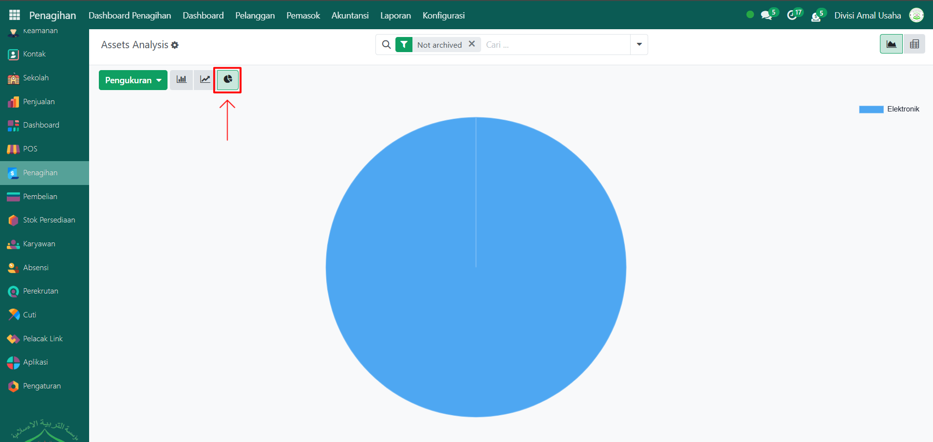 Klik pada salah satu elemen pada grafik (batang, garis, atau pie) untuk melihat detail aset yang direpresentasikan oleh elemen tersebut.