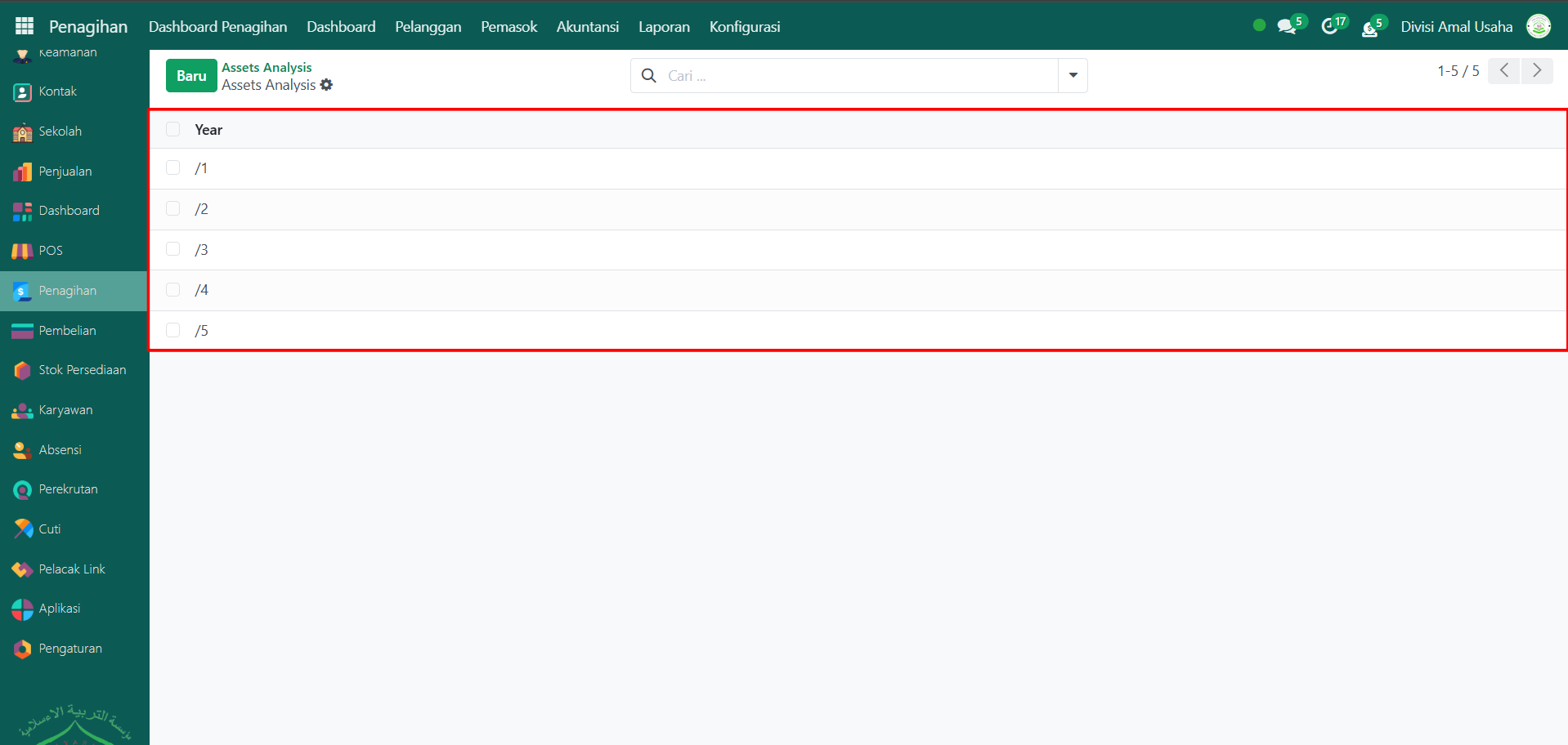 Halaman ini akan menampilkan daftar data laporan aset.