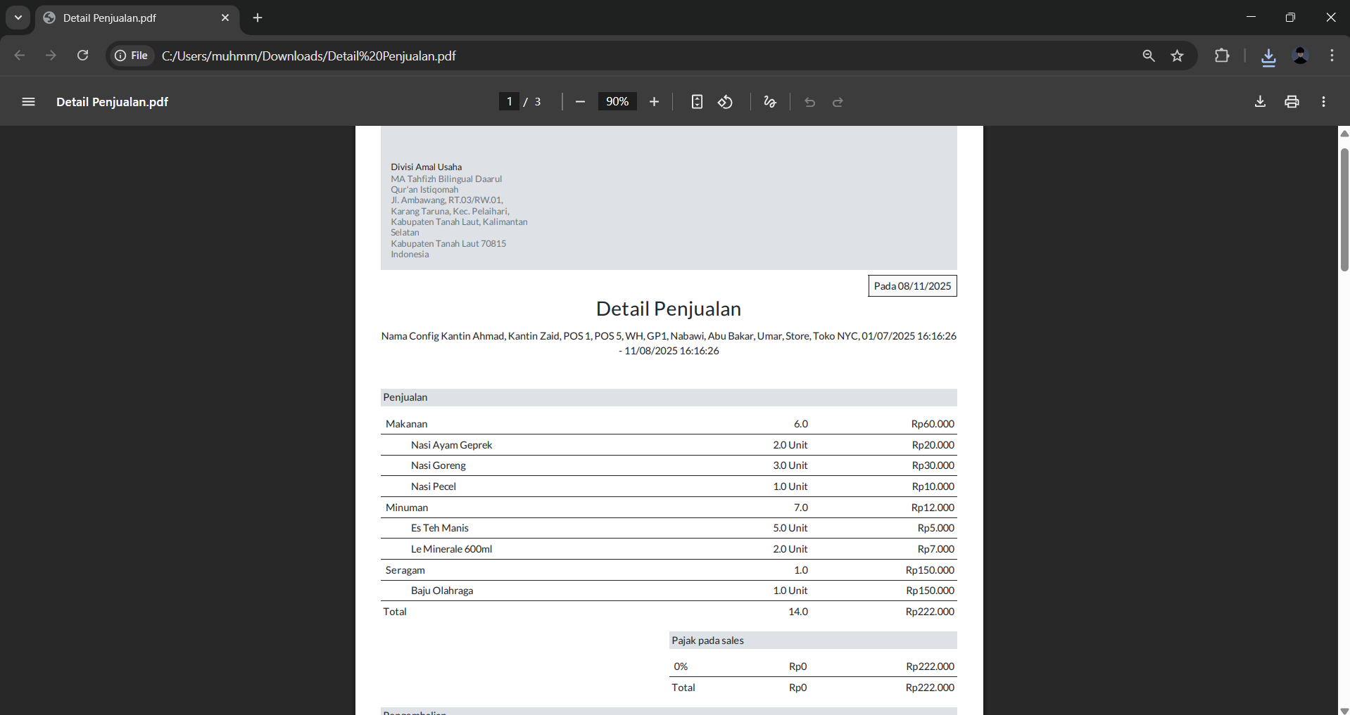 Sistem akan mengunduh laporan dalam format PDF secara otomatis.