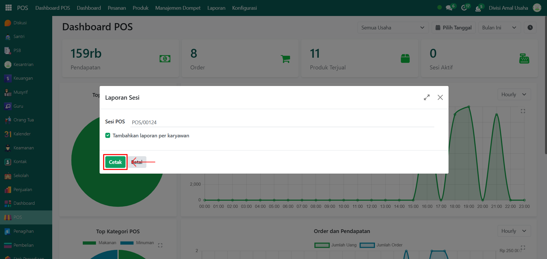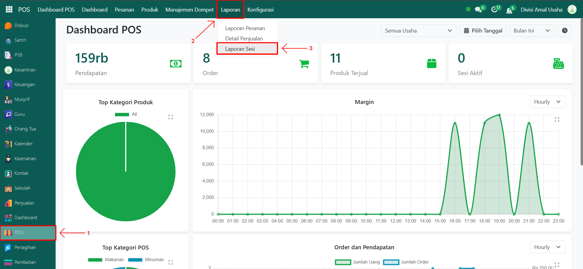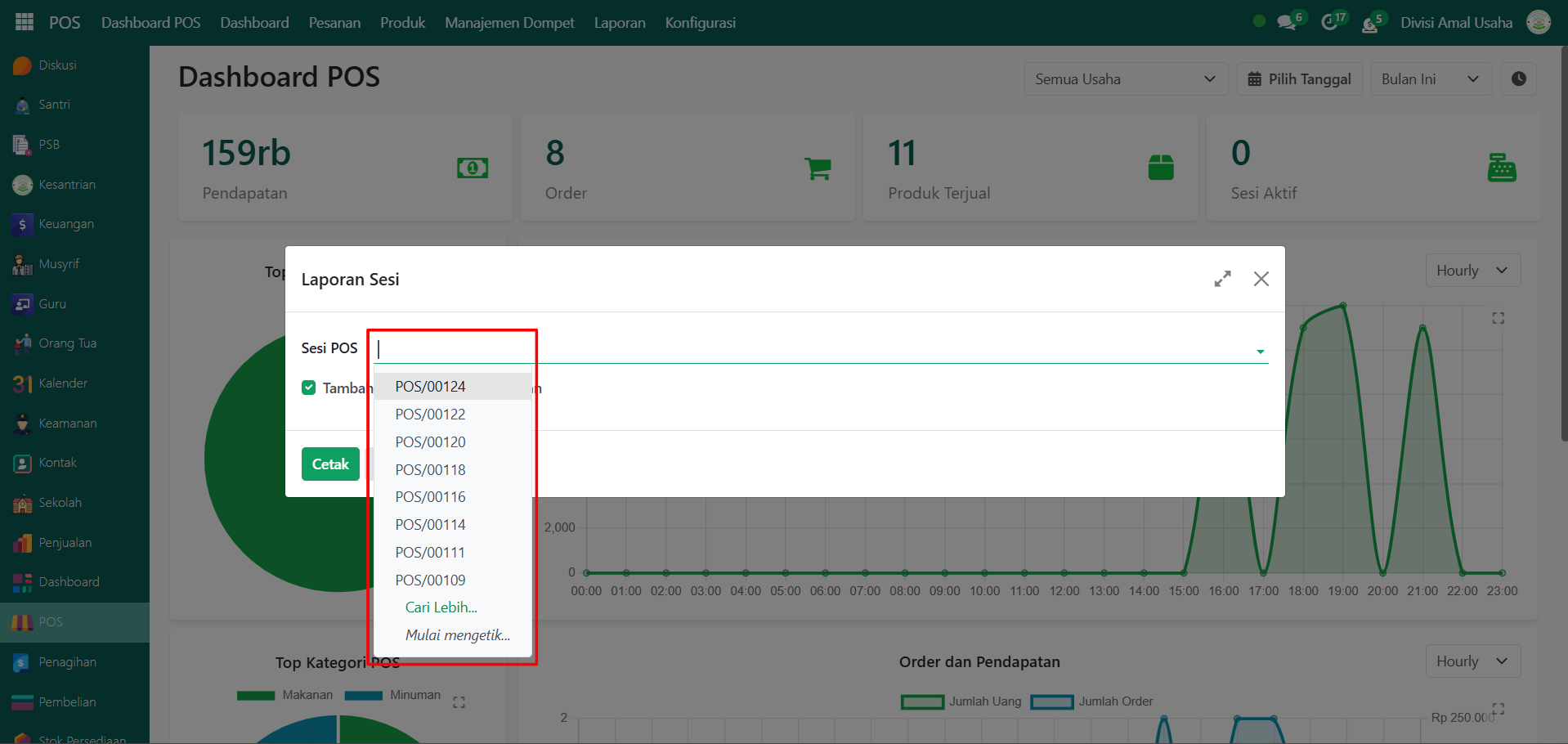 Berikut adalah langkah-langkah untuk melihat laporan sesi POS pada Odoo Pesantren.