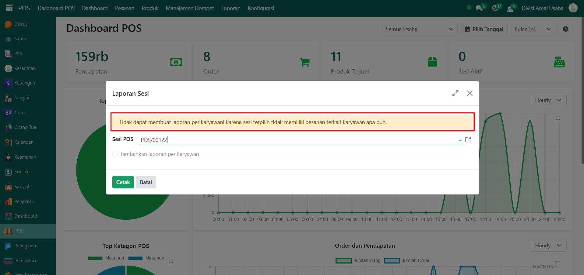 Klik tombol "Cetak" untuk memproses dan menghasilkan laporan sesi (dan laporan per karyawan jika tersedia).