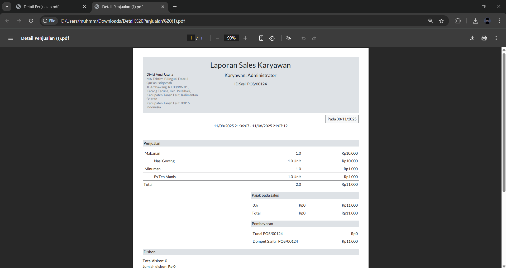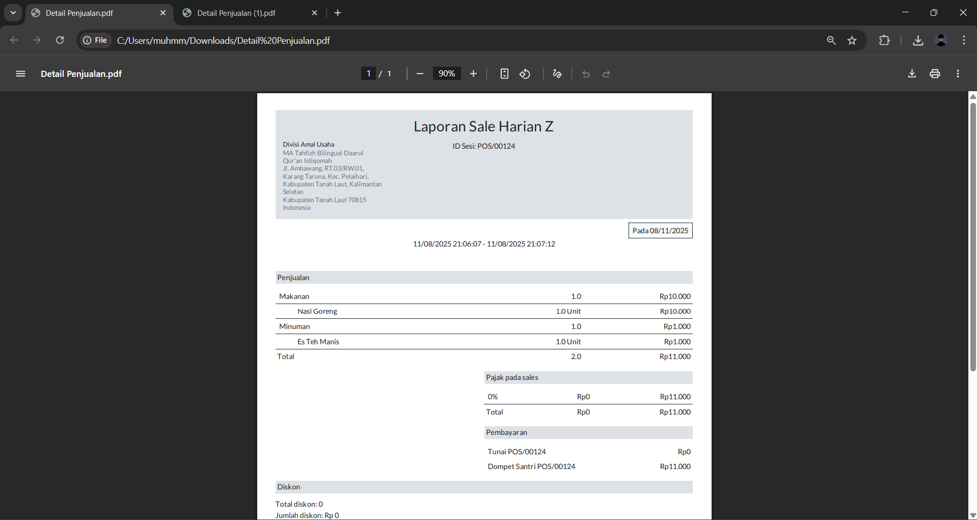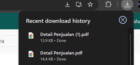 Sistem akan mengunduh laporan dalam format PDF. Buka file PDF tersebut untuk melihat rincian laporan.