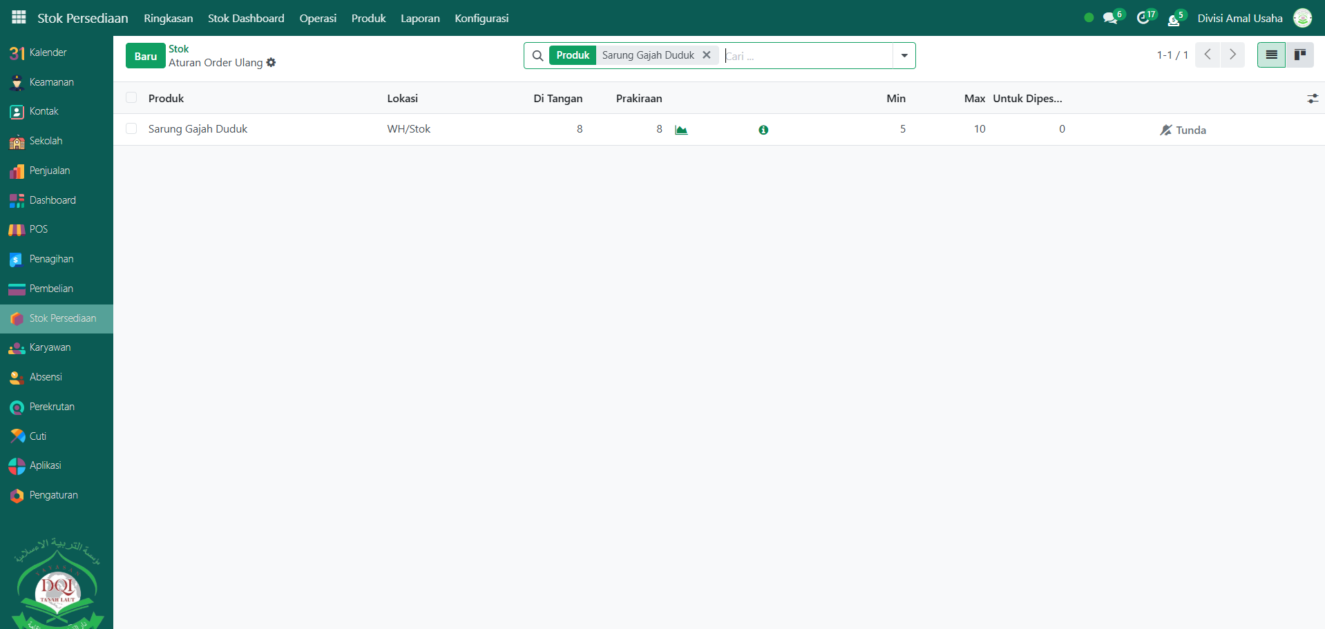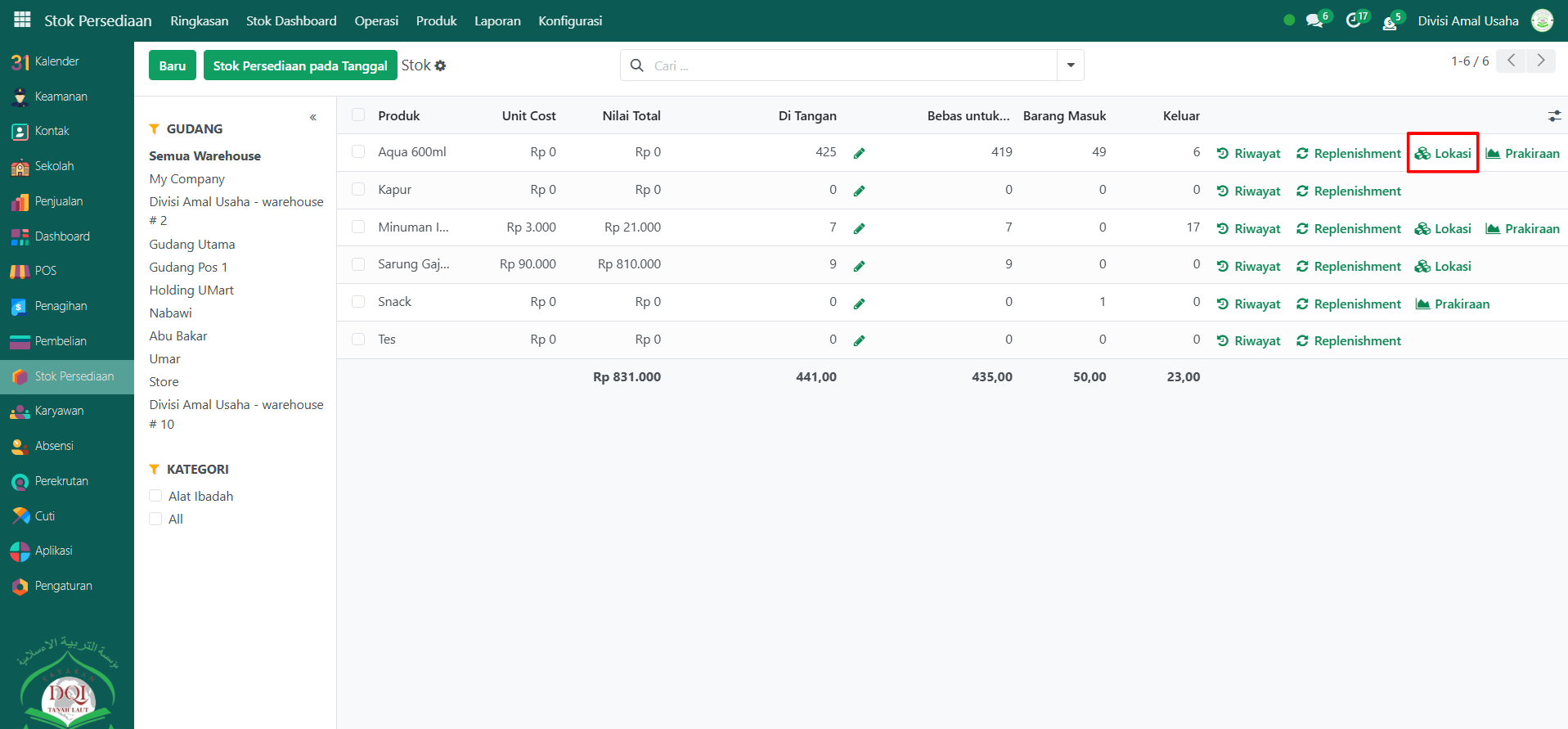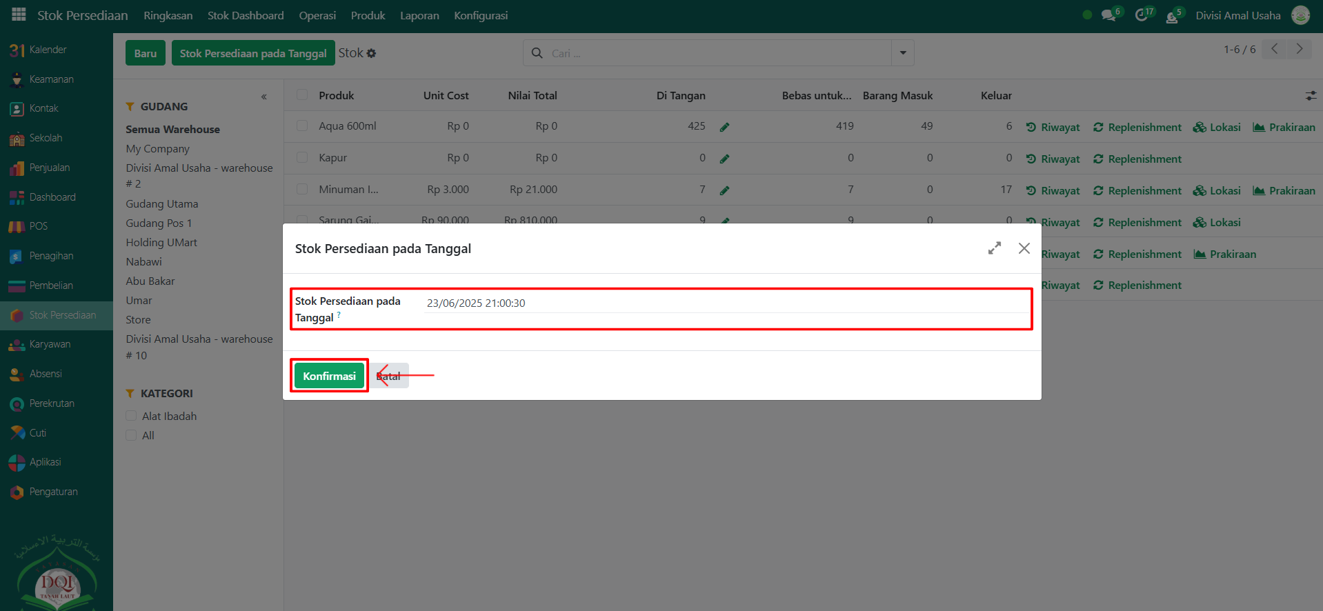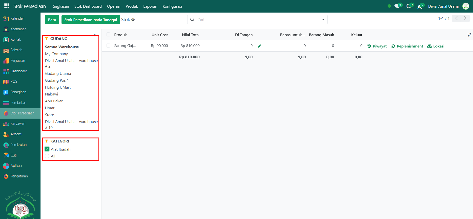Berikut adalah langkah-langkah untuk melihat Stok pada Odoo Pesantren.