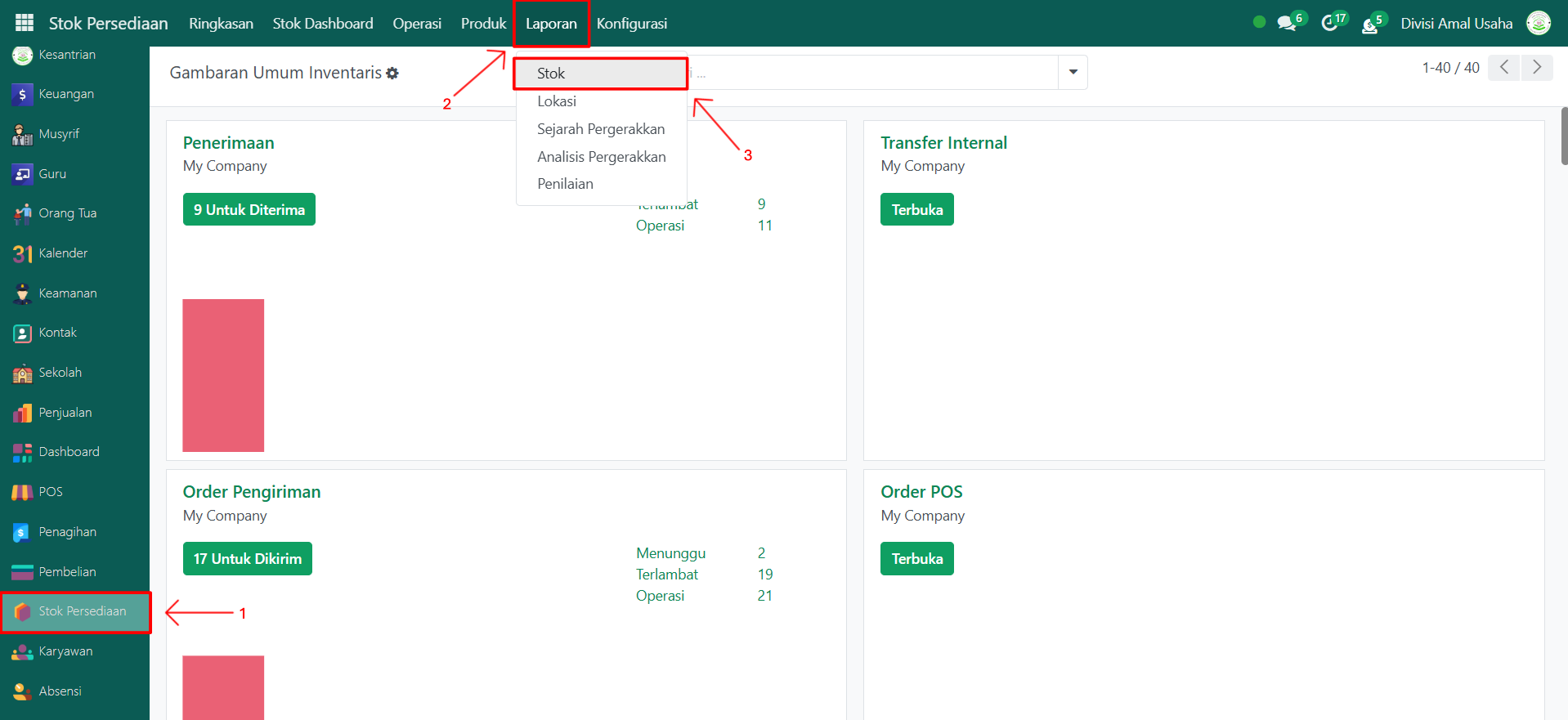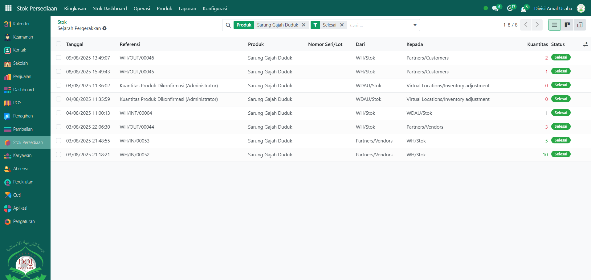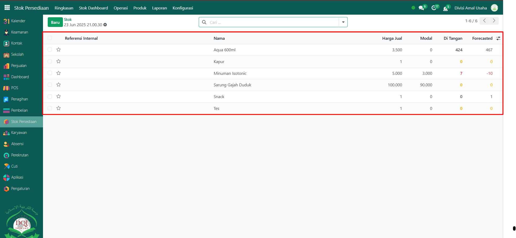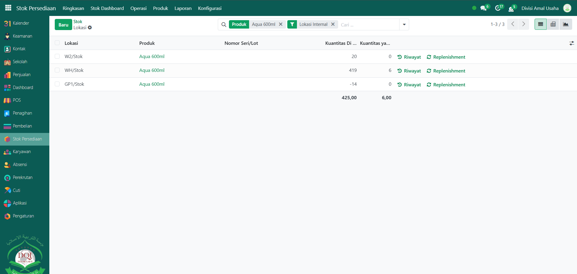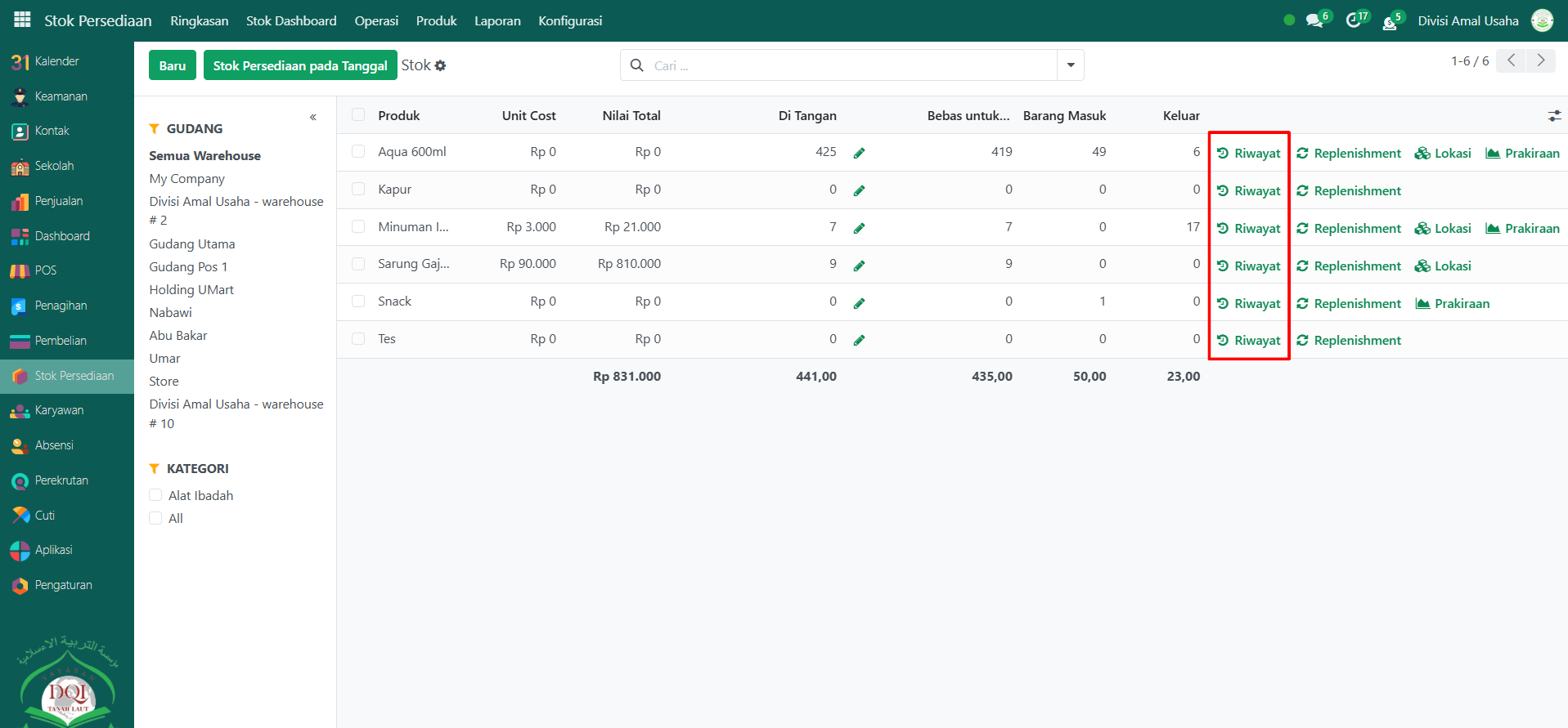Berikut adalah langkah-langkah untuk melihat Stok pada Odoo Pesantren.