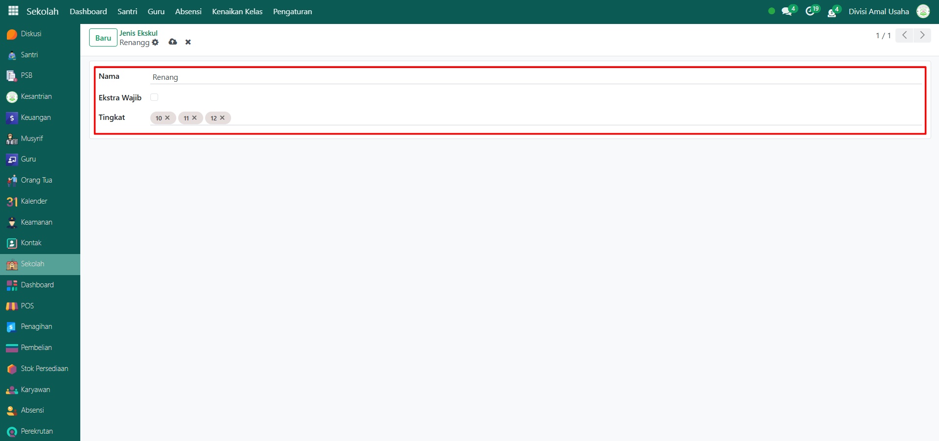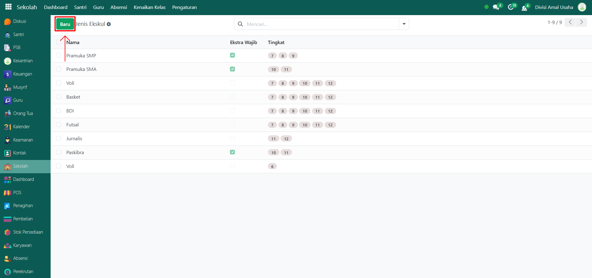 - Ekstra Wajib (aktifkan jika ekskul ini wajib diikuti oleh santri)