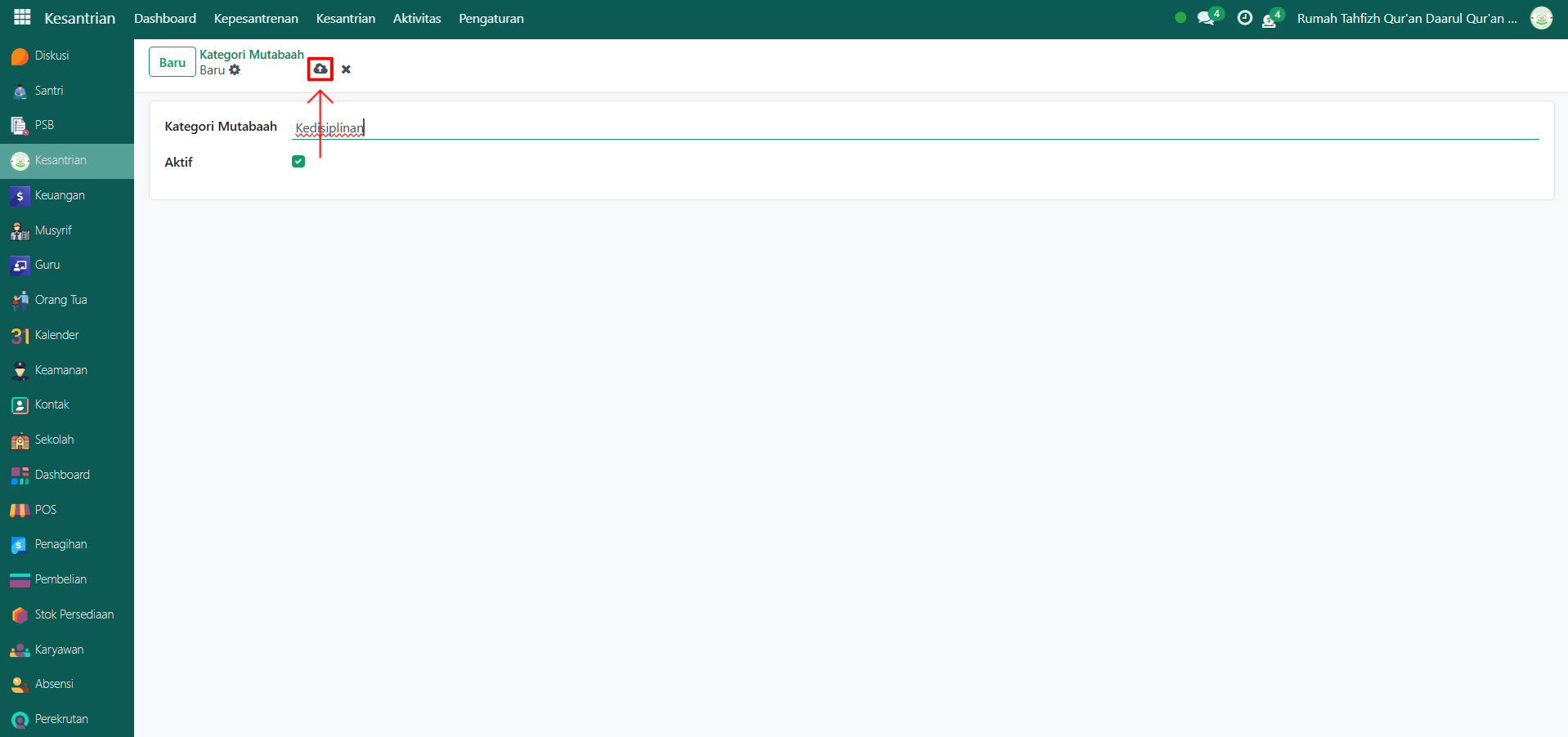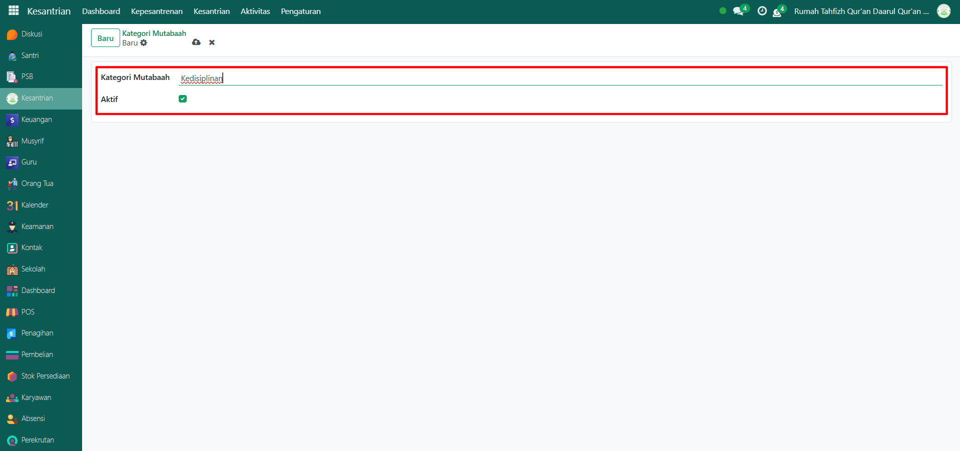 - Aktif (centang checkbox ini agar kategori mutaba’ah dapat digunakan pada pencatatan aktivitas santri).