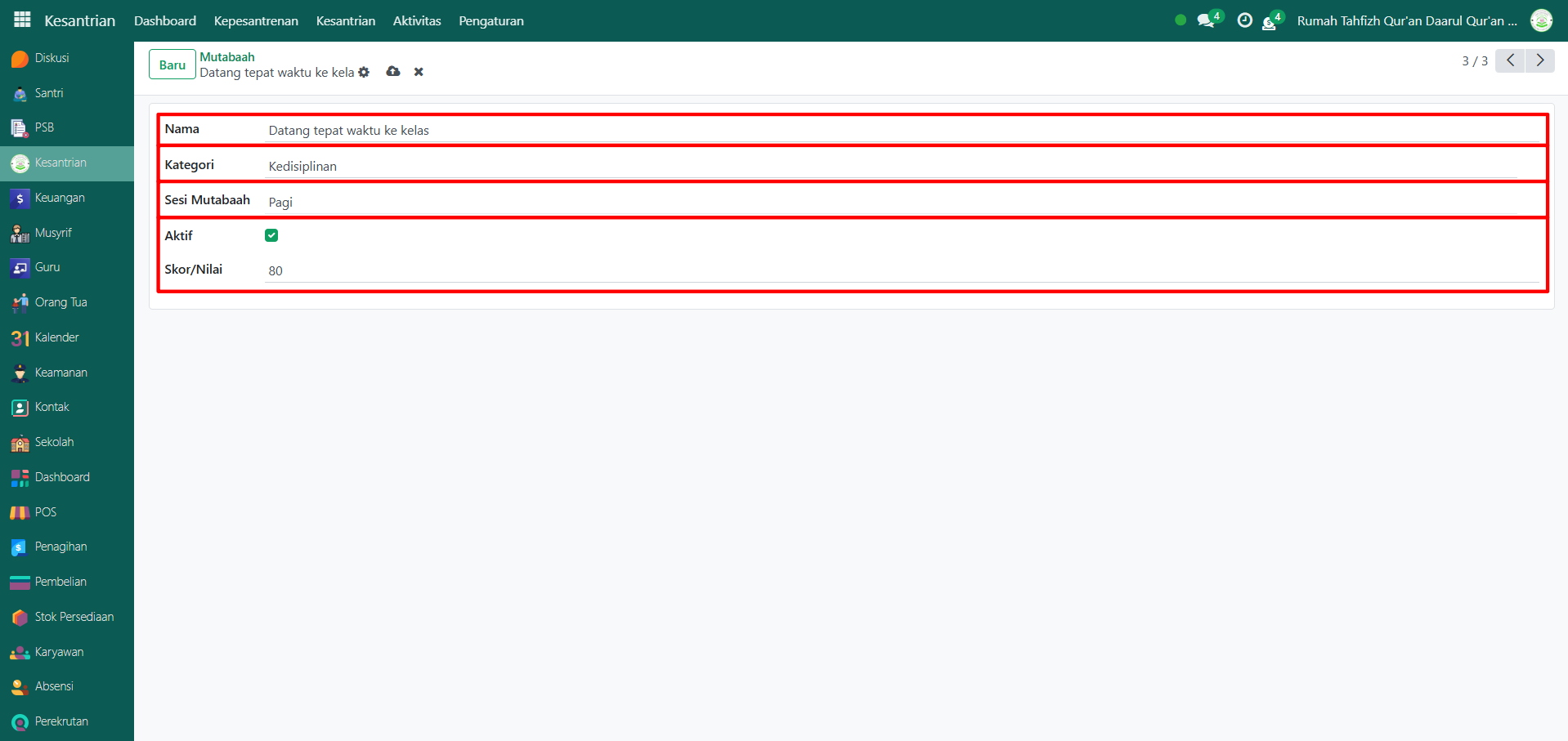 Berikut adalah langkah-langkah untuk menambahkan mutaba'ah pada Odoo Pesantren.