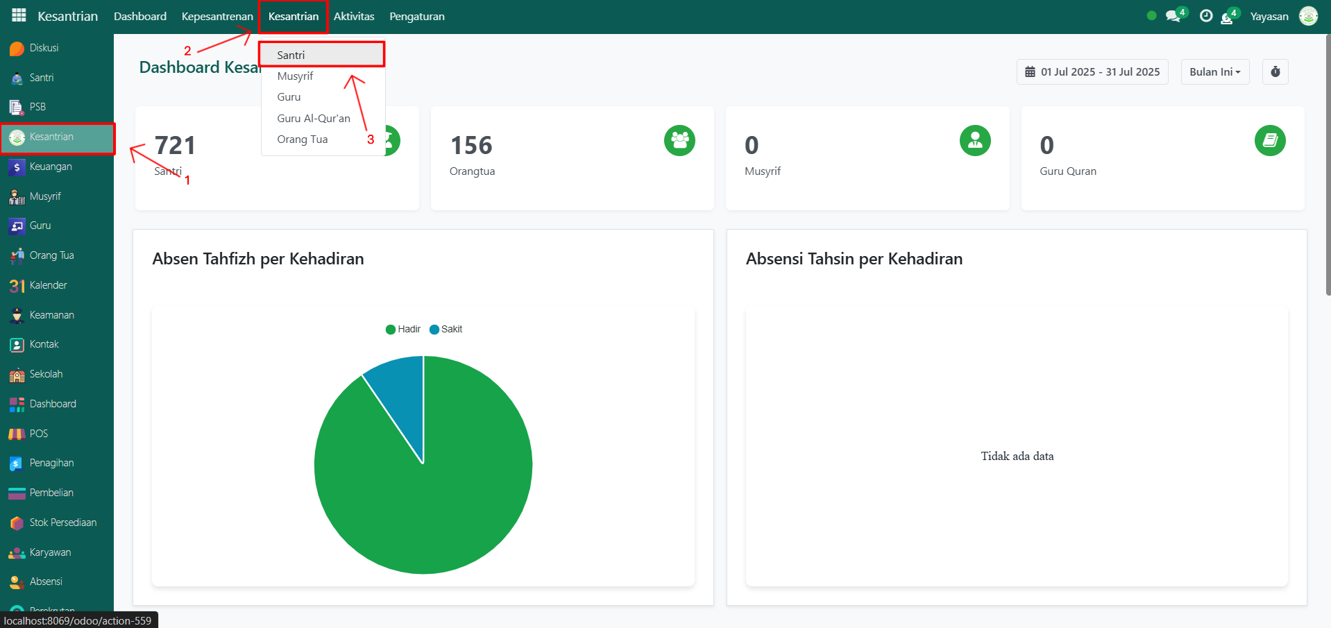 Buka modul Kesantrian, lalu klik menu Kesantrian kemudian pilih submenu Santri.
