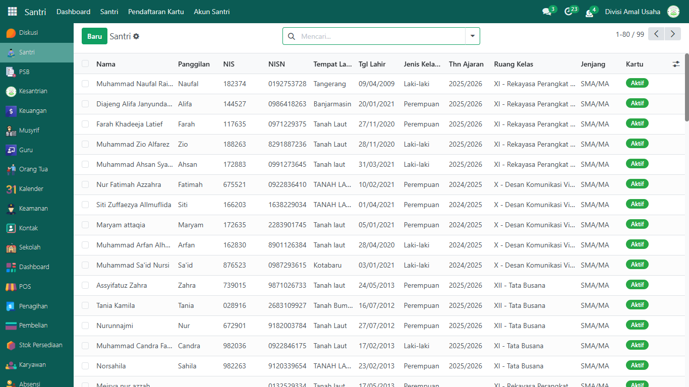 Modul pada Aplikasi Odoo Pesantren memiliki berbagai jenis tampilan yaitu: