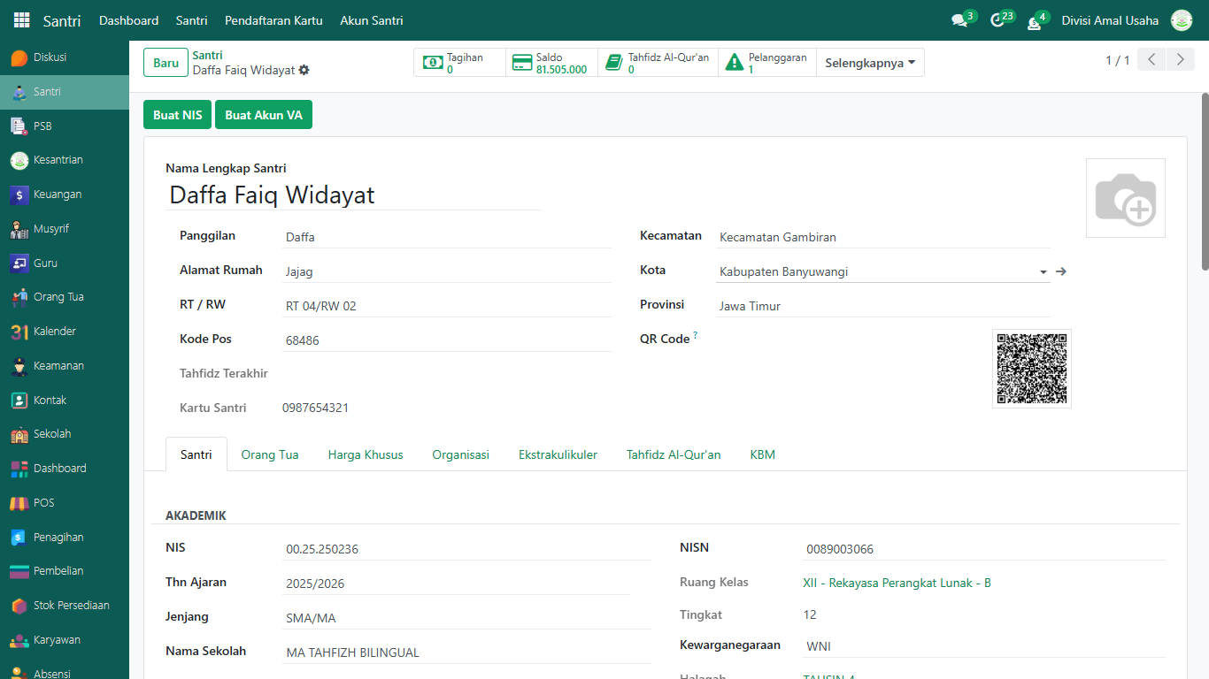 - Data Orang Tua – Mengisi informasi wali atau orang tua santri.