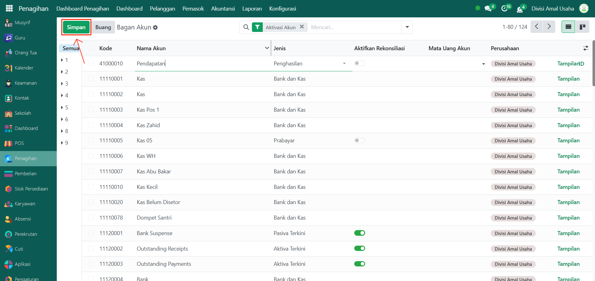 Klik Simpan untuk menambahkan akun ke daftar COA.