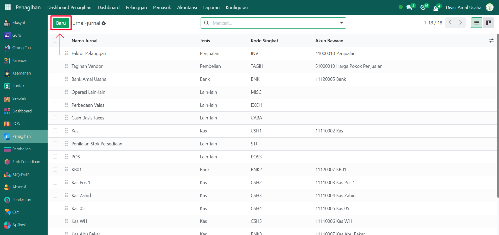 Klik tombol “Baru” untuk membuat jurnal baru.