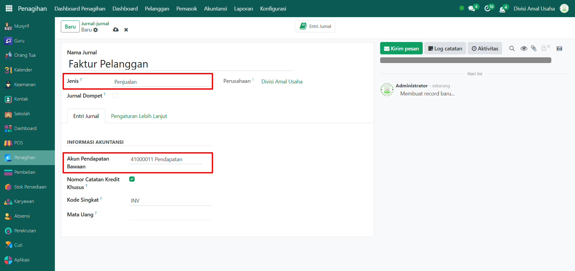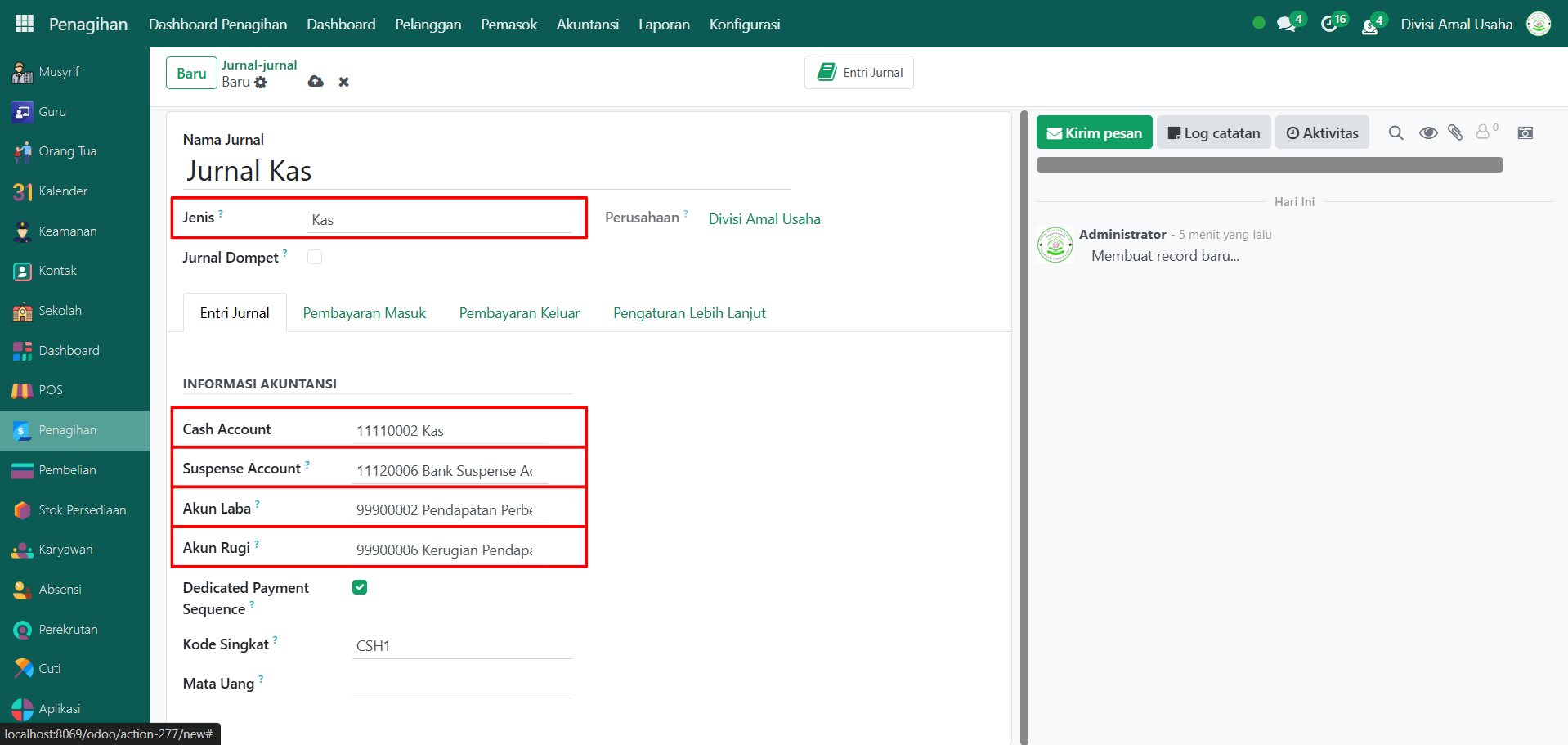 Konfigurasi Jurnal Akuntansi Odoo Pesantren