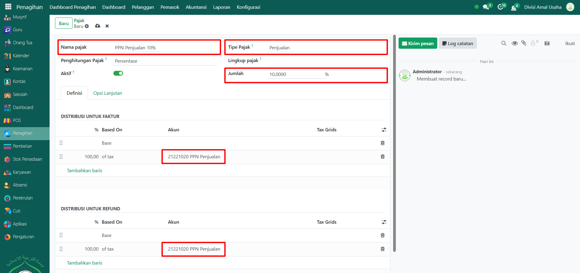 Membuat Pajak Baru di Odoo Pesantren