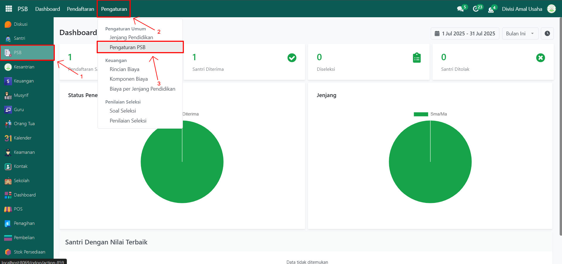 Buka Modul PSB, lalu klik menu Pengaturan kemudian pilih submenu Pengaturan PSB.