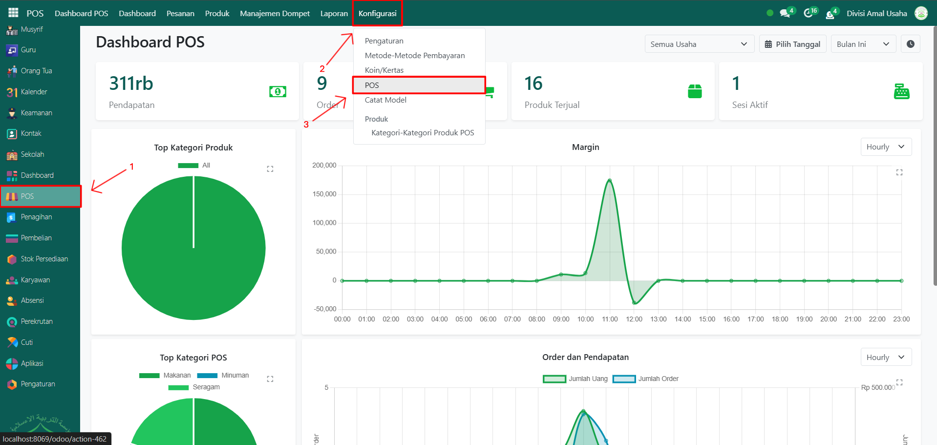 Buka Modul POS, lalu klik menu Pengaturan kemudian pilih submenu POS.