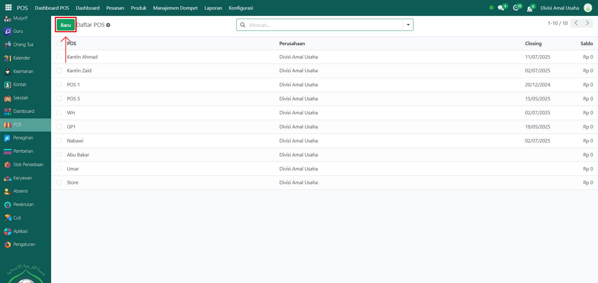 Klik tombol "Baru" untuk membuat sesi POS baru.