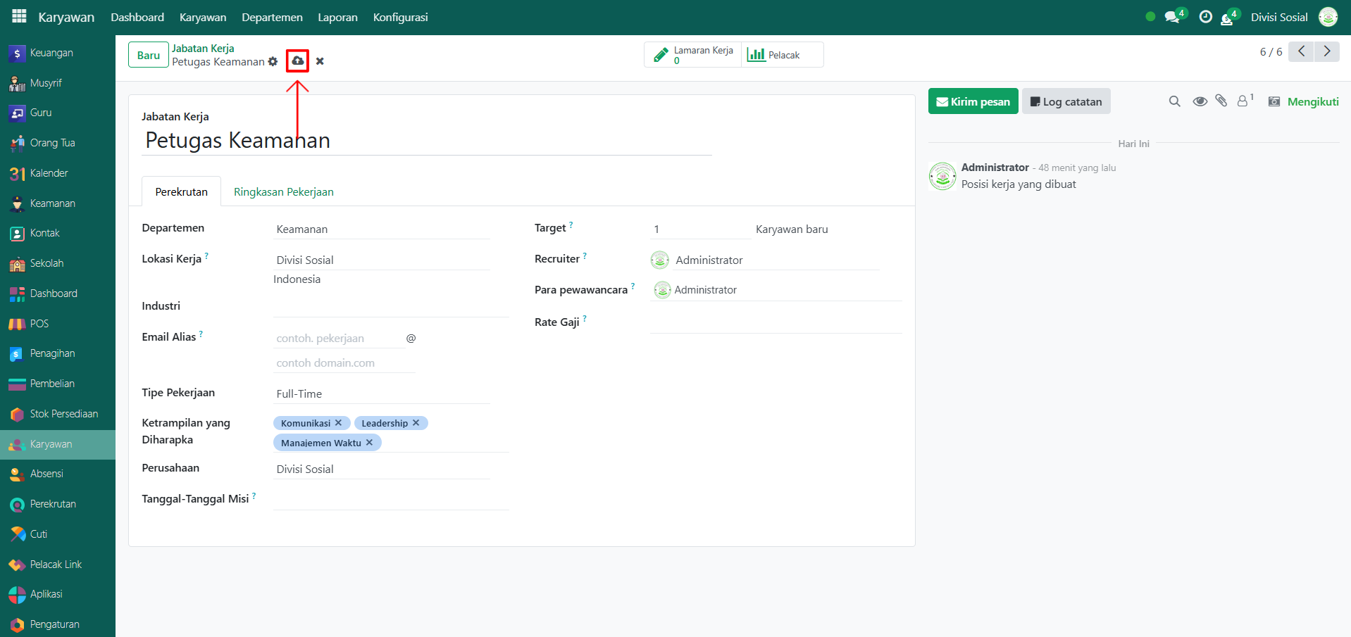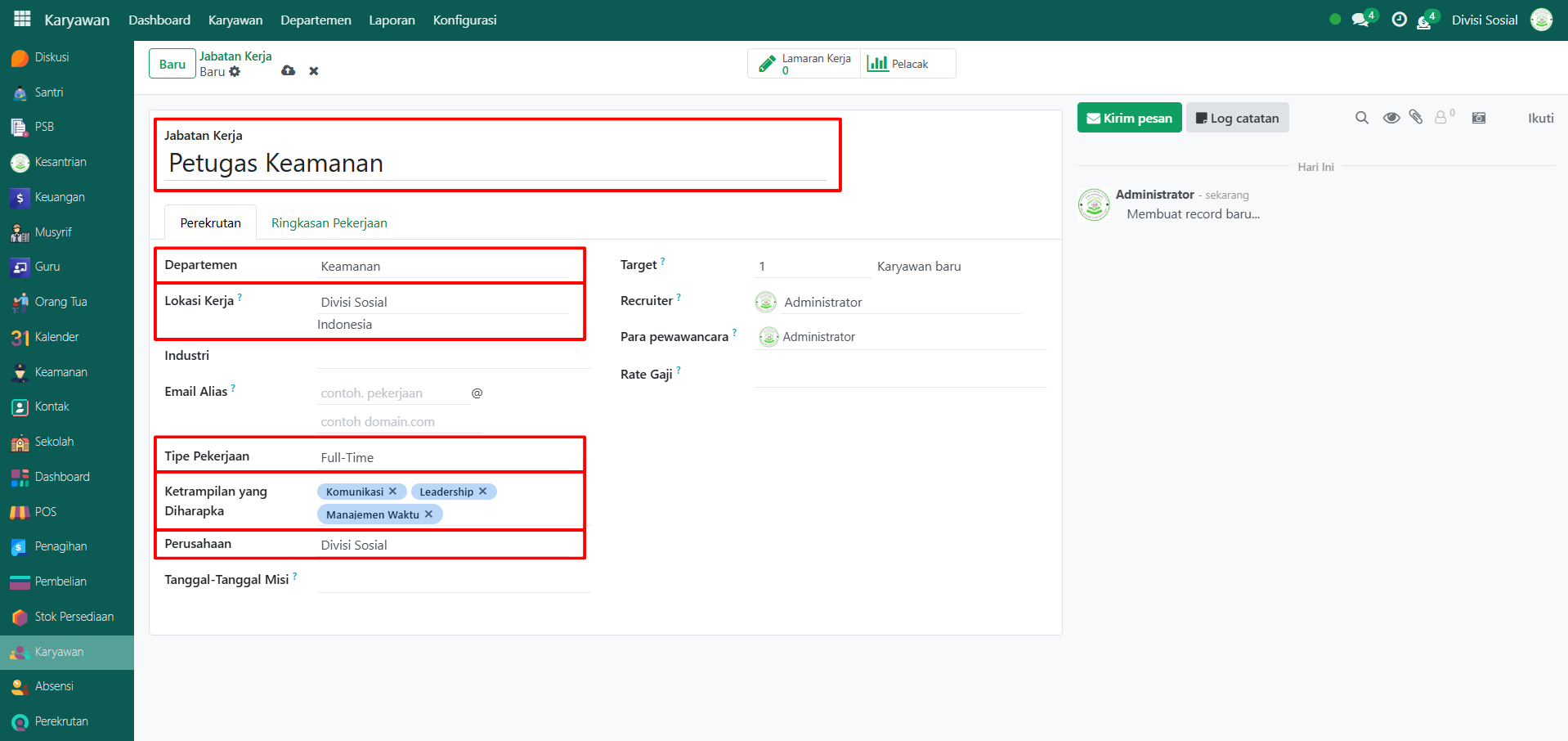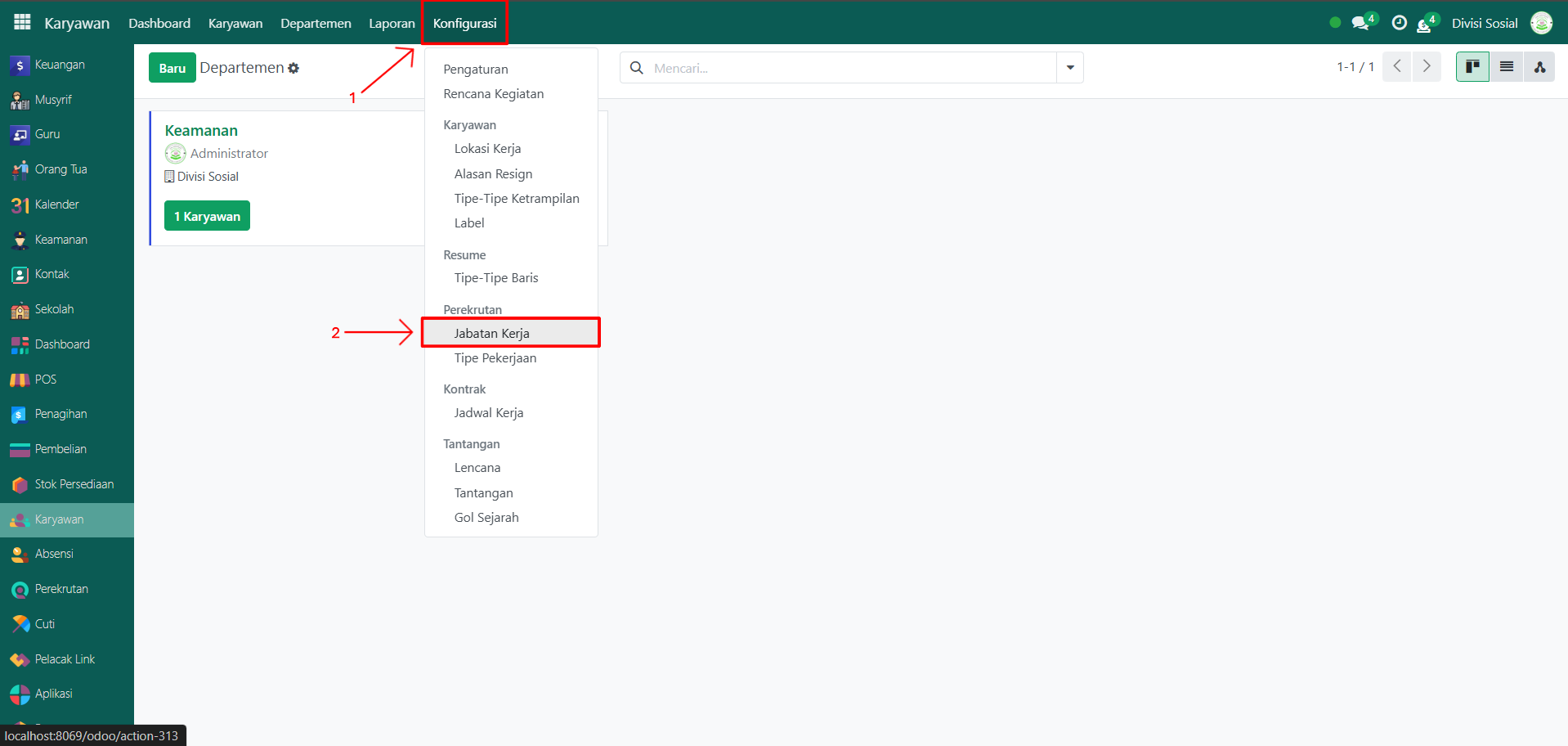 Setelah departemen dibuat, langkah berikutnya adalah membuat jabatan kerja di dalam departemen tersebut. Berikut langkah-langkahnya: