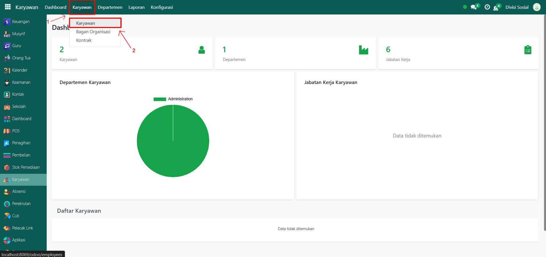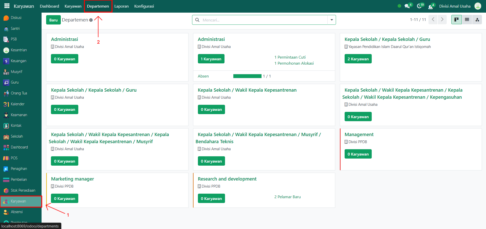 Buka modul Karyawan, lalu klik menu Departemen.