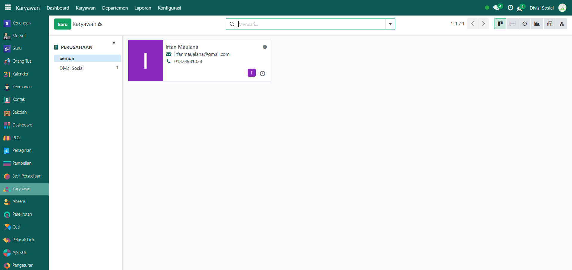 Pada modul yang sama, klik menu Karyawan, lalu pilih submenu Karyawan.