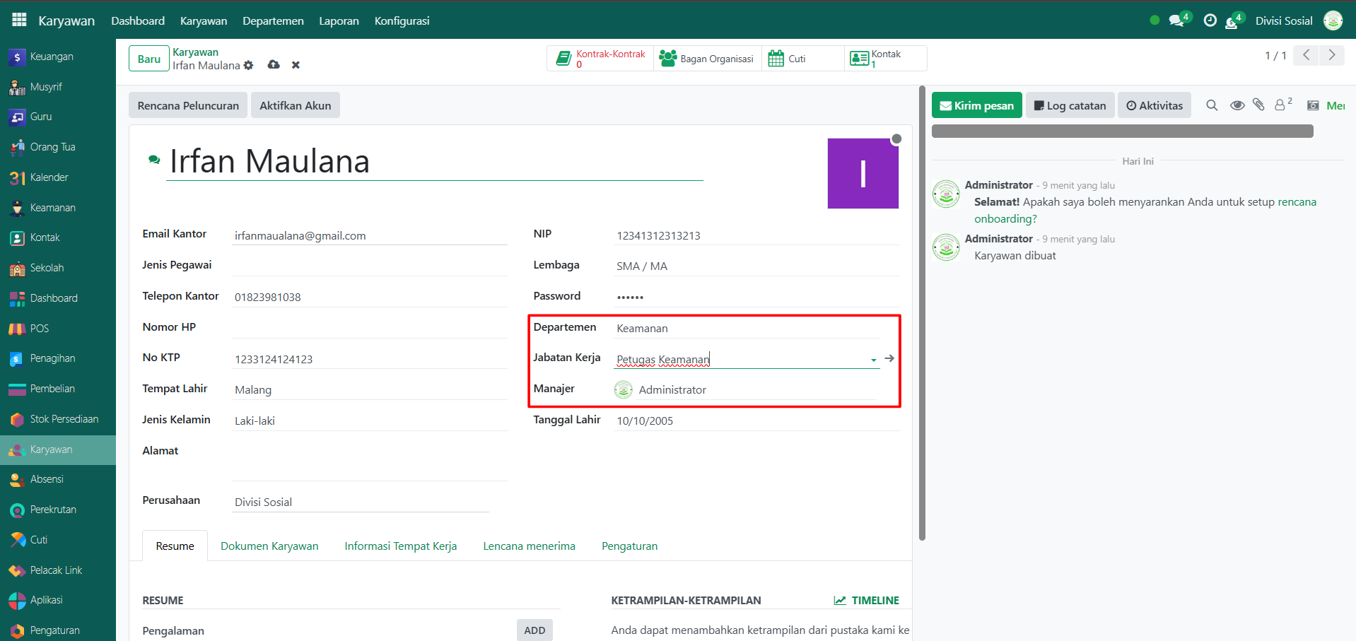 - Departemen (misalnya: Keamanan)