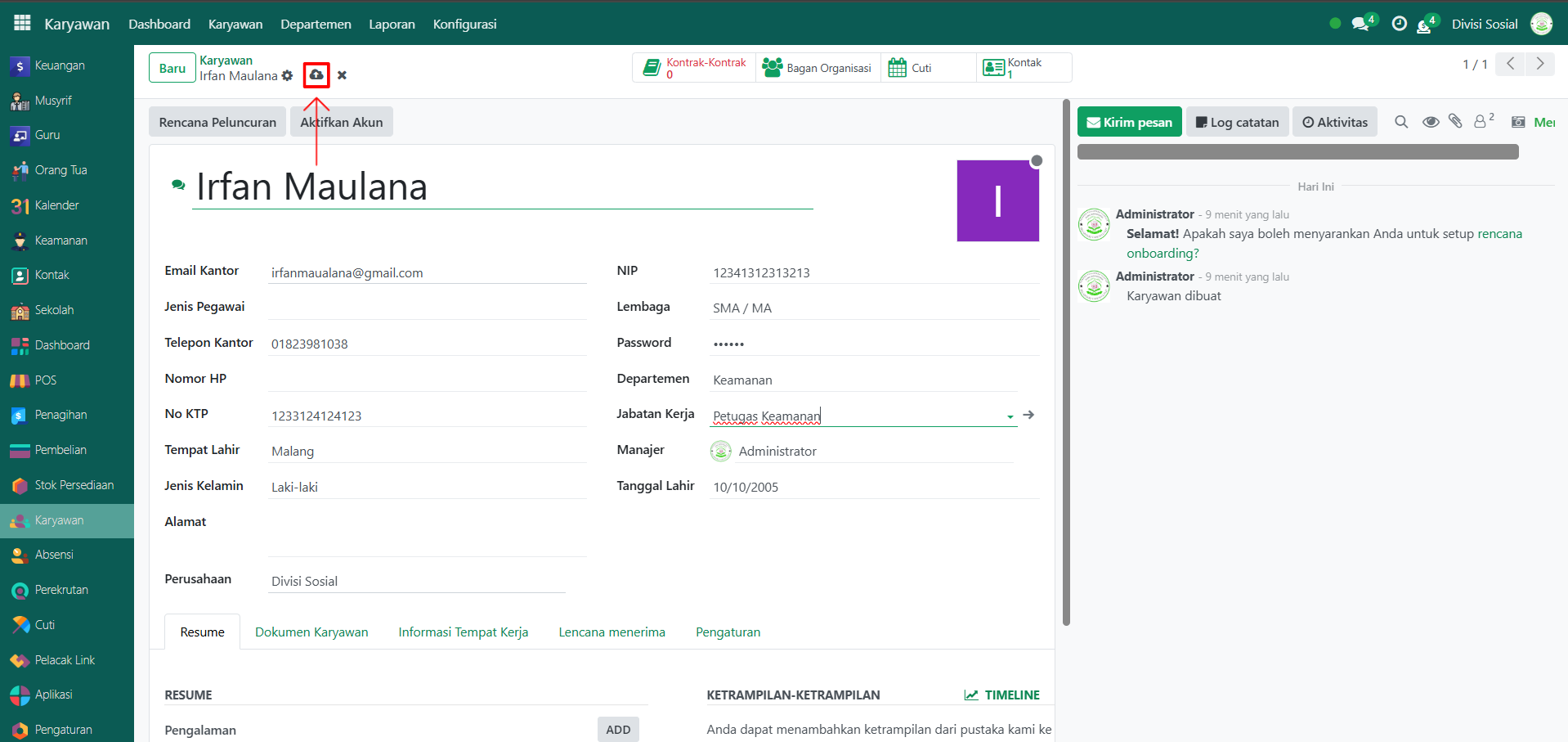 Setelah semua inputan selesai diisi, klik icon Simpan agar perubahan konfigurasi karyawan tersimpan di sistem.
