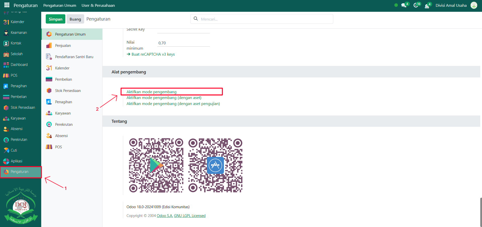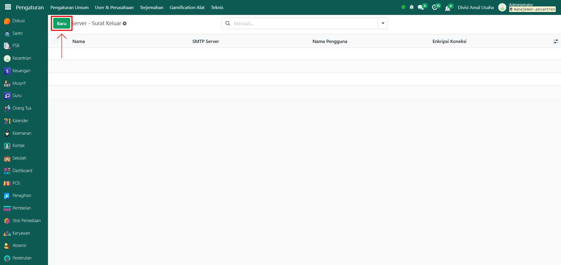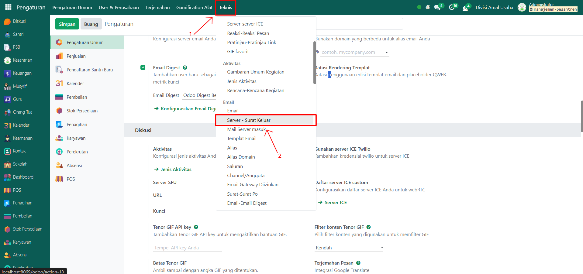 Berikut adalah langkah-langkah untuk mengkonfigurasi SMTP Gmail pada Odoo Pesantren.